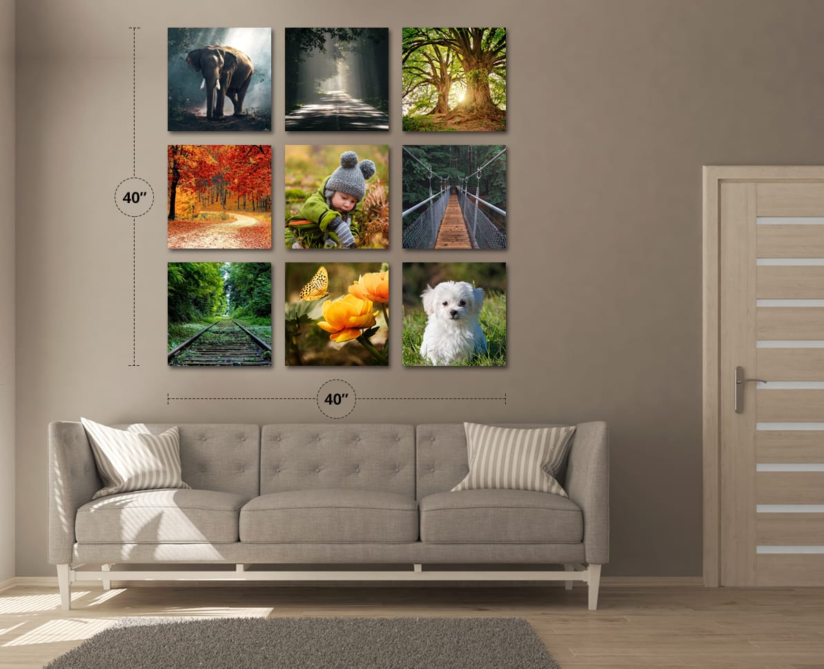 - Multi Canvas Wall Displays: The images are spliced into different tiles, and are then mounted on the wall to bring a larger than life look to the wall.